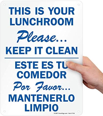 Amazon Com Smartsign 14 X 10 Inch This Is Your Lunchroom Please Keep It Clean Bilingual Sign Digital Printing 55 Mil Hdpe Plastic Blue And White Industrial Scientific
